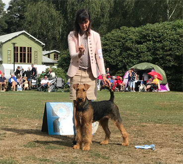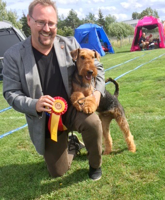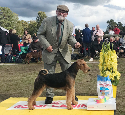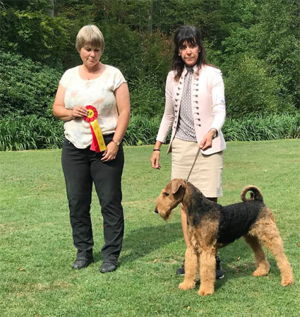 2018-09-22 Ballerup, Danmark, Dansk Kennel Klub, internationell utställning. Domare Lilian Lieton, Danmark. Elva deltagande airedaleterrier, varav en valp.
