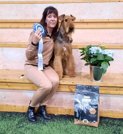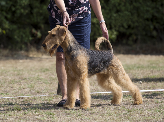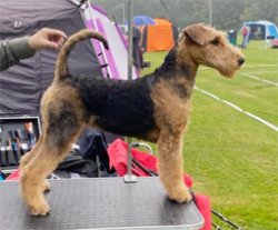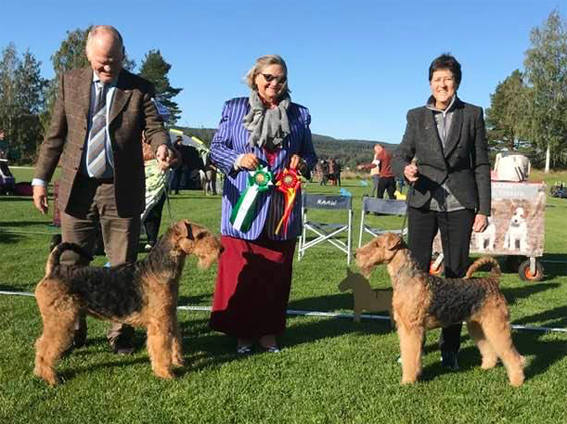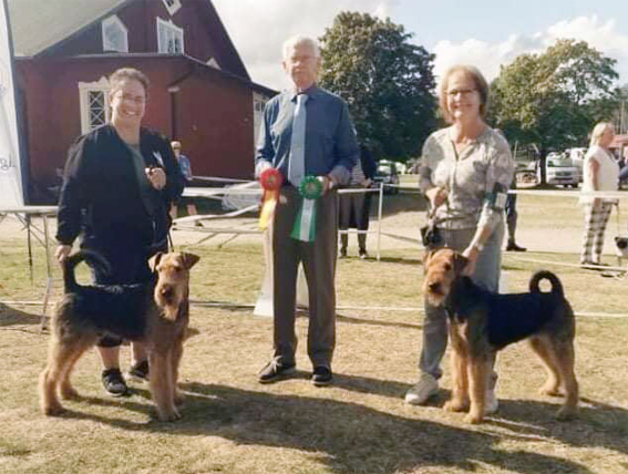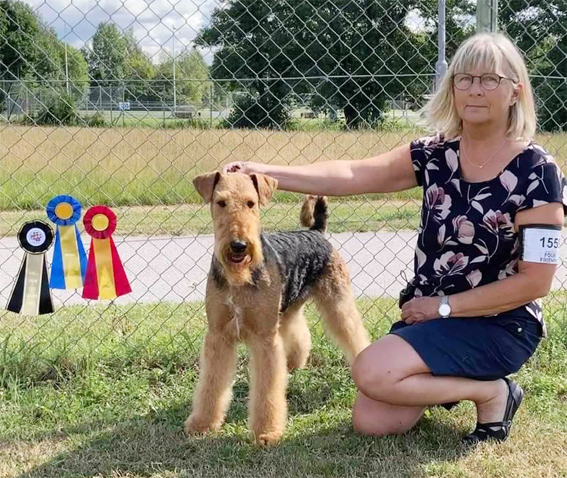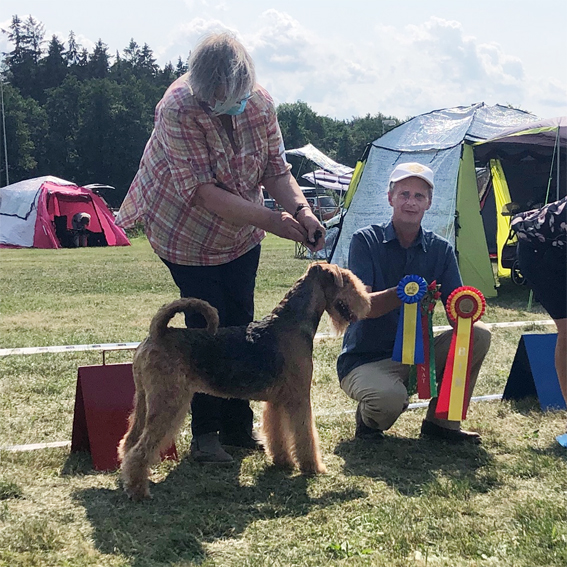 2021-09-04, Leksand, Dalarnas Kennelklubb, internationell utställning. Domare Wera Hûbenthal, fyra deltagande airedaleterrier.