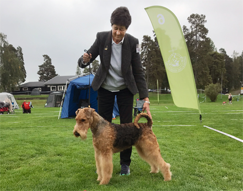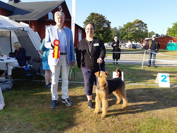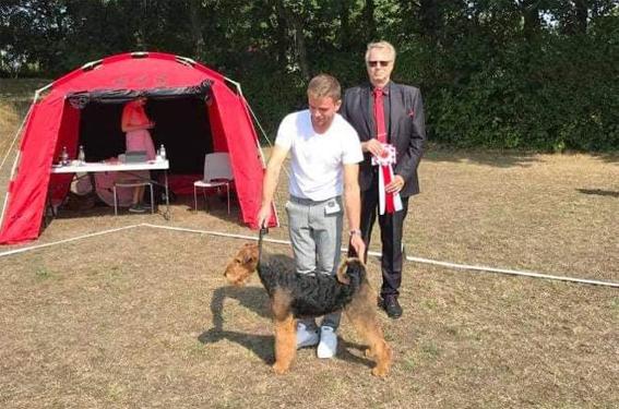 2021-08-14 Bornholm, Dansk Kennelklub, internationell utställning. Domare Suzana Simon, Kroatien. Sex deltagande airedaleterrier.