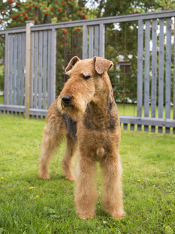 2021-09-11 Uppsala läns kennelklubb, Nordic Show. Domare Helena Peterzéns. En deltagande airedaleterrier.