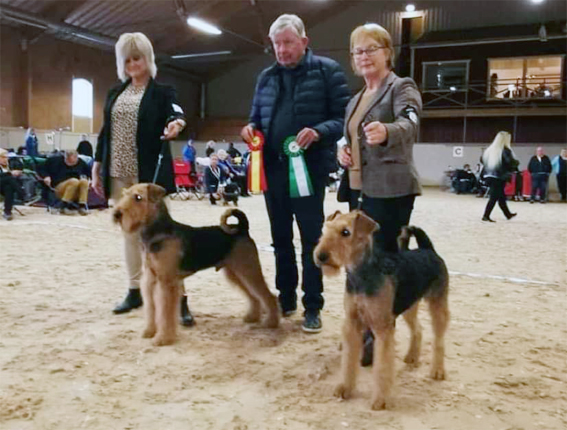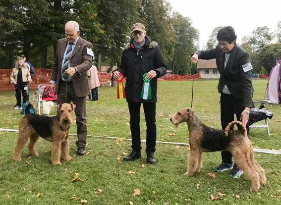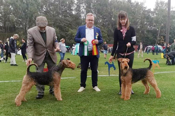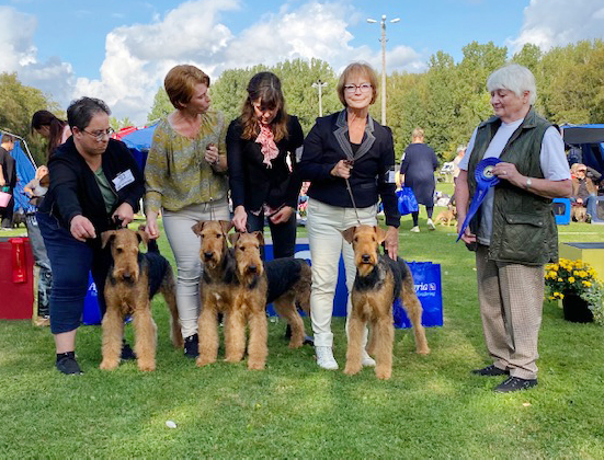 2021-09-19 Ballerup, Dansk Kennel klub, internationell utställning. Domare Rodi Hübenthal, Norge. Fem deltagande airedaleterrier